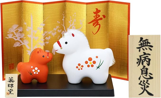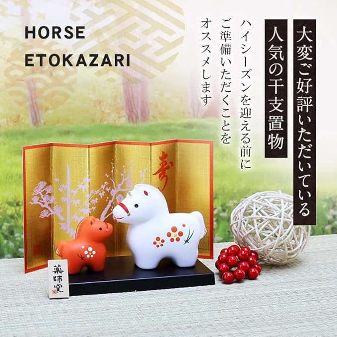 大阪長生堂 干支飾り 干支置物 午 馬 ウマ うま 十二支飾り 正月飾り 陶器 オリジナル木札無料特典付(別送) 紅白