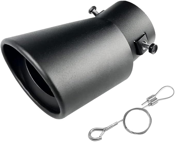 車用 マフラーカッター 下向き式 口径2.5インチ 落下防止ワイヤー付き エキゾーストチップ ステンレス製 斜めカット 排気管 マフラー パイプ テールパイプ 外装 パーツ カスタム 大型車 軽自動車 取付直径38-53mmに対応 ブラック
