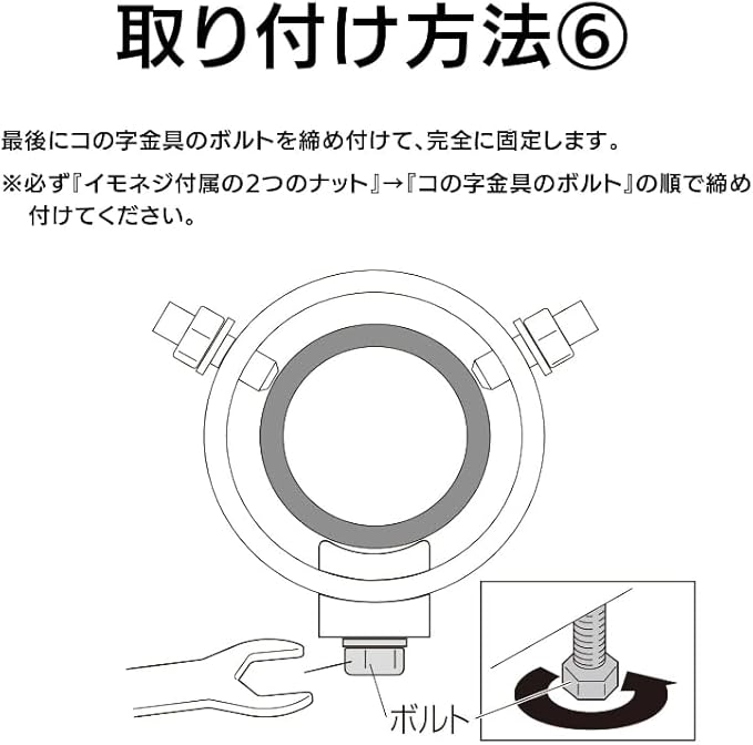 ●特殊ネジ(イモネジ)2本とコの字金具で取りつけるので確実な取り付けが可能です。