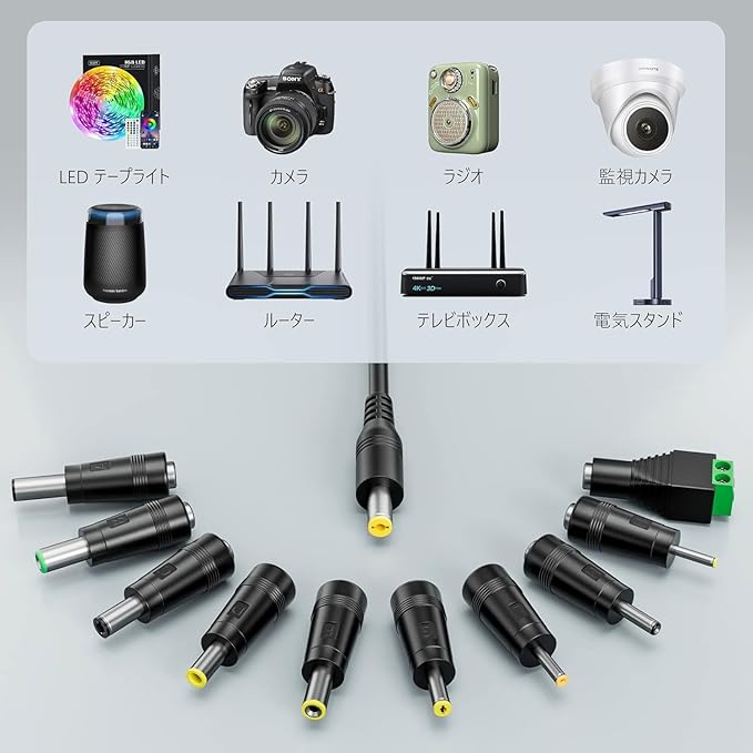 「バッケージ内容」1x36W AC電源アダプター、10*コネクタ、1*日本語説明書。