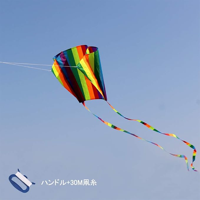 凧 レインボーカイト 組み立て簡単 ハンドル 30M凧糸 アウトドア 微風で揚がる凧 収納袋付き