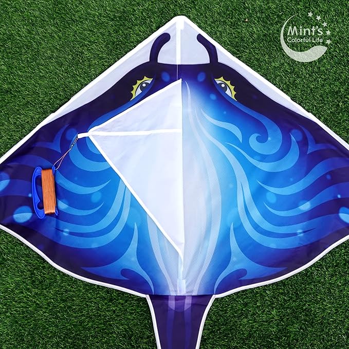 Mint's カラフル ライフ デビルフィッシュカイト、キッズ、大人用、簡単に飛ばせるデルタカイト シングルライン ラージ、凧の持ち手付き