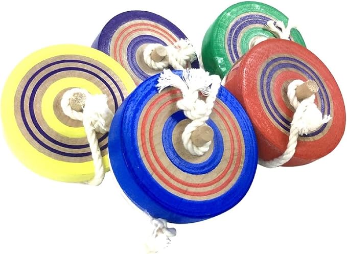 直径60mmの色塗りの木芯こまです。 こまひもと一緒に1個づつ袋に入ってます。