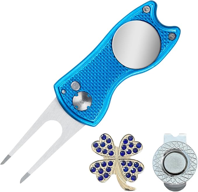 【折りたたみ式グリーンフォーク】フォーク部分が折りたためるので、ポケットやキャディバッグを傷つける心配がありません。コンパクトで持ち運びがスムーズです。