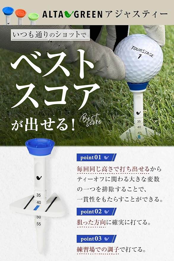 ⛳️ 高さ調整機能: 30~55mmの6段階で理想的なスイングをサポート。