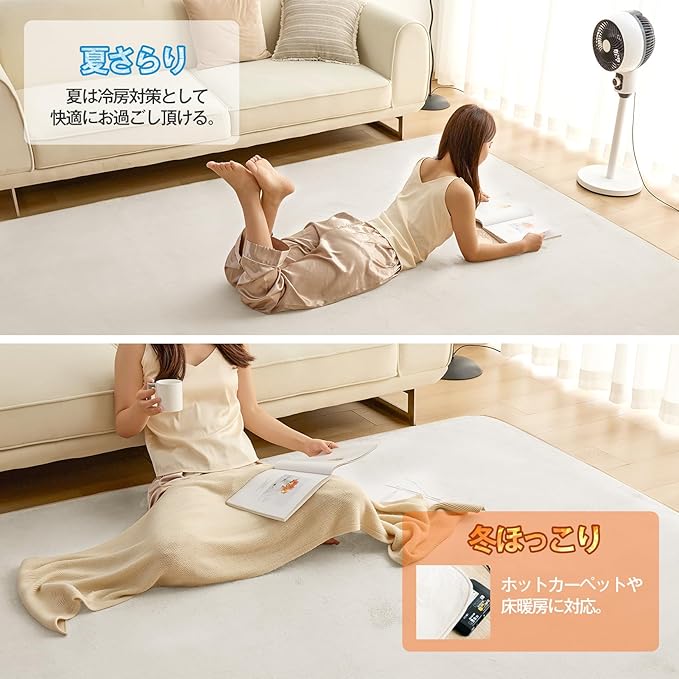 【暖房屋・ホットカーペット対応】耐熱加工を施しているので、ホットカーペットや床暖房の上に敷いてもお使いいただけます。こたつの敷布団としても併用可能!ふわふわと暖かく、更に居心地が良くなり離れたくなくなることでしょう。底冷えする冬は、足元からぽかぽか。敷くだけでも暖かさを感じます。