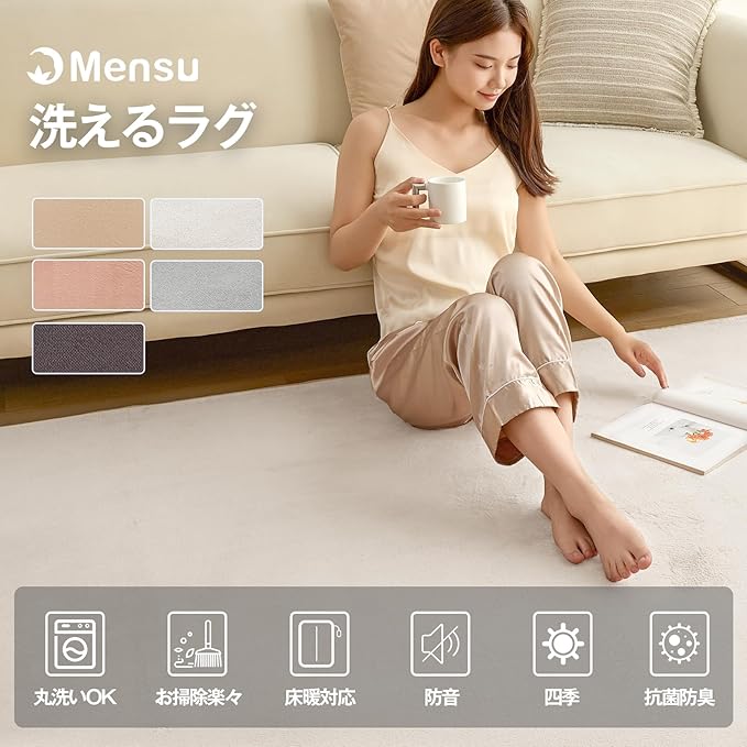 Mensu カーペット ラグ ラグマット 洗える 135 185cm 約1.5畳 絨毯 フランネルラグ 【至極の肌触り】 24時間持続制菌消臭 毛足4mm 滑り止め付 北欧 おしゃれ 【SOFT HOT】 制菌防臭 オールシーズン 床暖房 ベージュ