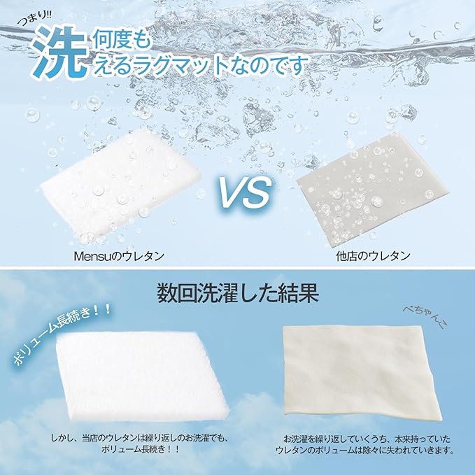 【お子さまやペットのいるご家庭に嬉しい<はっ水加工>・滑り止め付きのラグ】液体をこぼしても、カーペット表面で水玉状になるのでサッと拭くだけ!汚れが付きにくく、お手入れ簡単です。(防水ではありませんので放置すると染み込む恐れがあります。早めにお拭き取りください。)滑り止めも付いていて、床面をしっかりキャッチしてより滑りにくくなりました。掃除機をかける時も滑らないのでストレスから解放されます。