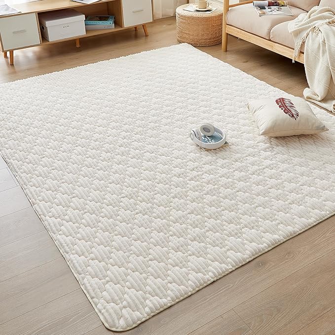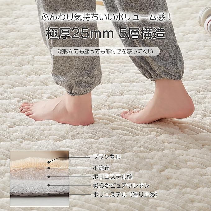 CHOSHOME カーペット ラグ 極厚25mm ラグマット 1.5畳 絨毯 厚手 オールシーズン 滑り止め 防音 ふわっと手触り 北欧 あったか 洗える フランネル 床暖房 ホットカーペット対応 こたつ敷きマット 無地 防ダニ 防臭 130 190cm ベージュ