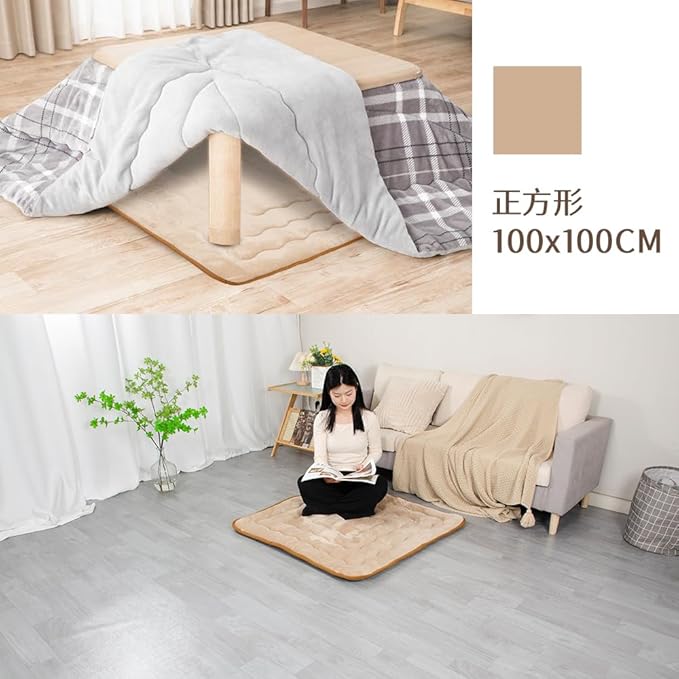 JEMAジェマ こたつ敷き布団 中敷 こたつマット こたつ敷パッド こたつパッド こたつペット こたつ敷き ラグ こたつ下敷き こたつペット こたつパット ラグマット カーペット 極厚 厚手 ホットカーペット対応 蓄熱 正方形 すべり止め 暖かい ウォーム 冬用 滑り止め付き ふわふわ リビング 約100x100cm ライトベージュ