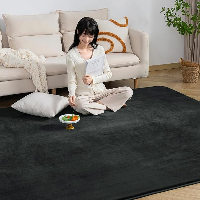 Keusnix ラグ カーペット 低反発 ラグマット 極厚25mm 絨毯 厚手 1.5畳 135x185cm 滑り止め付 抗菌・防ダニ加工 オールシーズン快適 リビングマット ふわっと手触り じゅうたん こたつマット 床暖房・ホットカーペット対応 ブラック