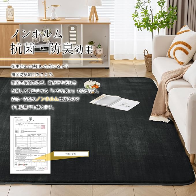 【滑り止め・抗菌・防ダニ】衛生的にご使用いただけるよう抗菌・防臭・防ダニ加工を加えます。カーペットの裏面にはゴム製の滑り止め加工があり、フローリングに敷いても滑りにくく、安全のノンホルム仕様なのでお年寄りやお子様やペットがいるご家庭でも安心です。