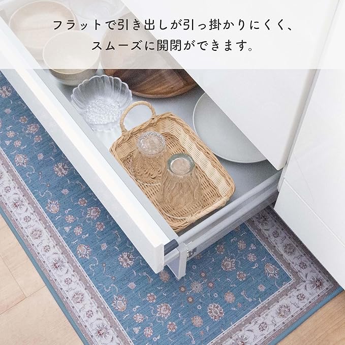 フラットなので引き出しの下に敷いても開閉しやすく、掃除機がかけやすいのでホコリもたまりにくいです。ずれにくいすべり止め加工。