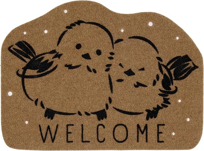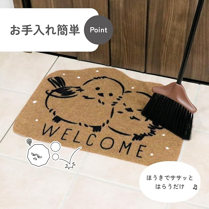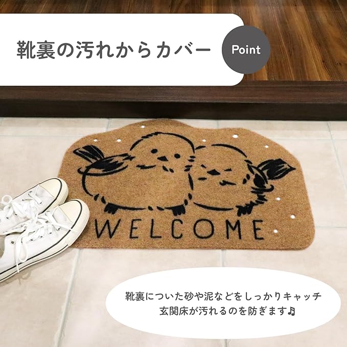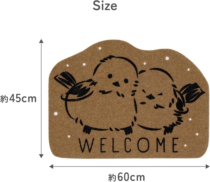 玄関マット シマエナガ ベージュ 幅60 奥行45 高さ0.5cm ドアマット 泥落とし 滑り止め 洗える