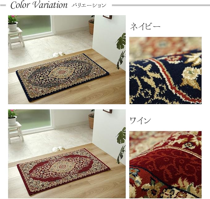 イケヒコ・コーポレーション ネイビー 約50 80cm トルコ製 ウィルトン織り 玄関マット ベルミラ