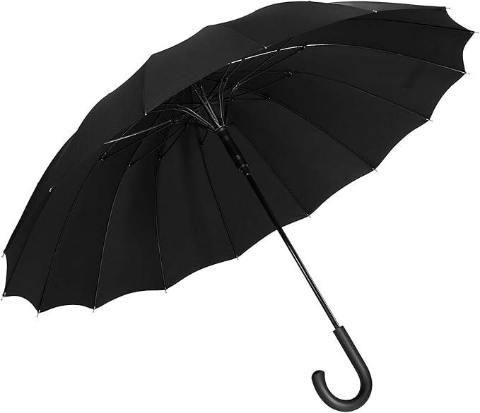 傘 メンズ 長傘 軽量 紳士傘 16本骨 大きい 耐風 撥水 悪天候に強い 高強度グラスファイバー 大きい ゴルフ 自動開け 収納ポーチ付き(