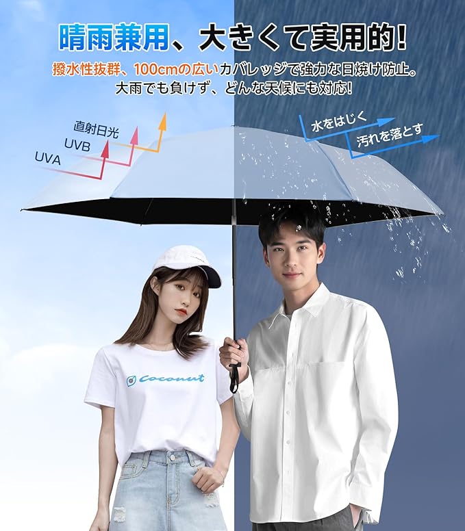 【晴雨兼用で大活躍!100cm広幅の極上アンブレラ】雨の日こそ紫外線対策が重要!SILVLFのプレミアム晴雨兼用傘は、300T高密度防水生地が豪雨をはじき、同時にUVカット99%※の日傘としても大活躍。直径100cmのワイドサイズ(一般的な折り畳み傘より約20%広い)で、大人2人がゆったり並んで歩ける快適空間を実現。突然の雨でも、強い日差しでも、この1本で完璧にガード!軽量設計(約235g)を保ちながら、風速10m/s(6級風)にも耐える強靭な作りで、どんな天候も怖くありません。