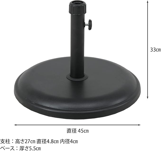 不二貿易 パラソルベース 15kg 幅45 奥行45 高さ33㎝ ブラック ガーデン パラソルスタンド ボルト固定 75817