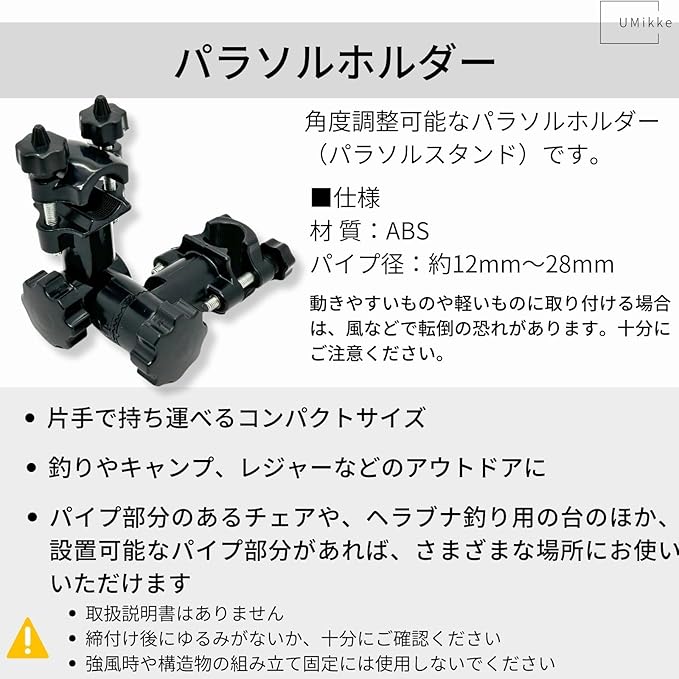 UMikke パラソルホルダー パラソルスタンド チェア 机 固定 クランプ ヘラブナ 筏 釣り コンパクト 角度 調整 キャンプ アウトドア レジャー 海
