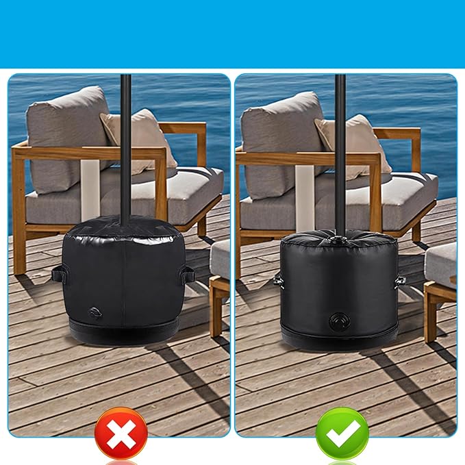 【頑丈な素材】このガーデンパラソル ベースは厚みのある500D PVCサンドイッチ生地で作られており、最大の厚さと頑丈さを確保し、究極の耐久性を実現します。この傘ウェイトパックは40kgの追加重量を提供し、傘立てを所定の位置にしっかりと固定し、強風の中でも安心感を与えます。