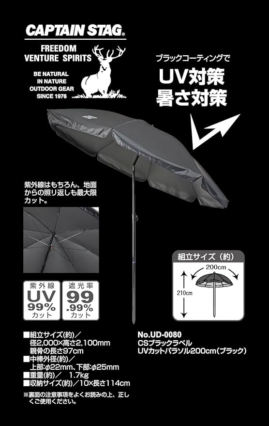 組立サイズ:(約)径2,000 高さ2,100mm、親骨の長さ:(約)97cm
