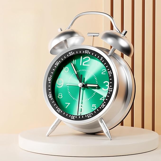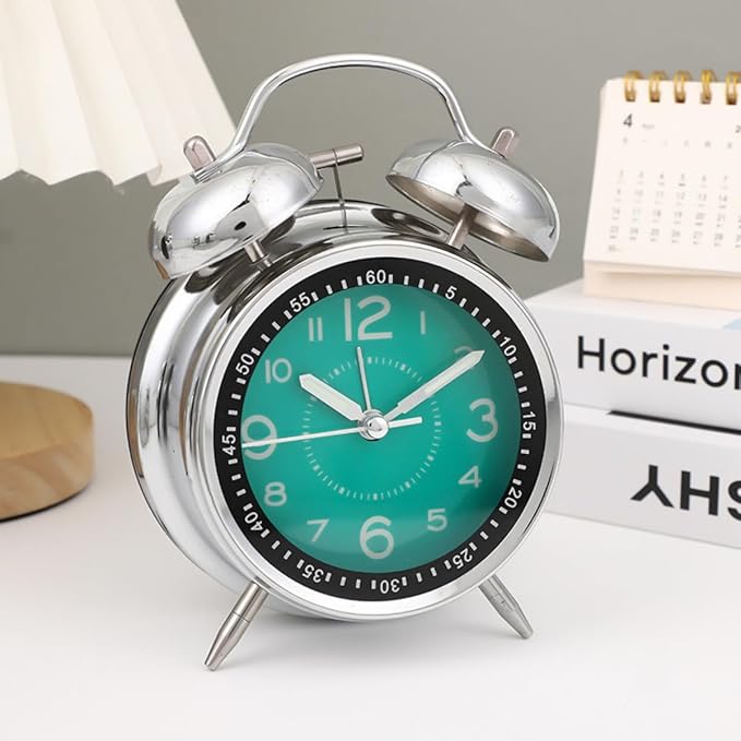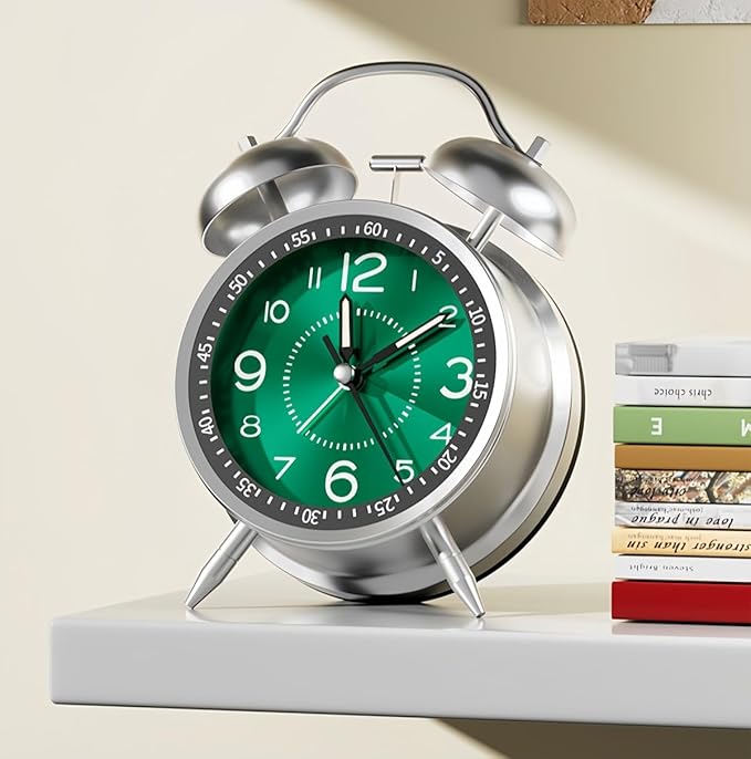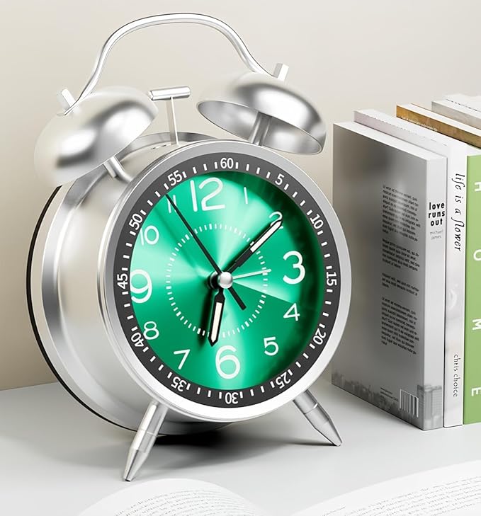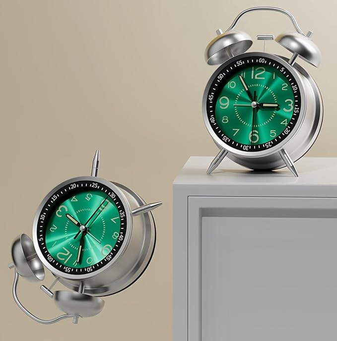 YYDS 爆音 大音量 アナログ うるさい おしゃれ 絶対起きれる目覚まし時計 振動 アラーム 爆音めざまし時計 目さまし時計 起きれるめざまし 目覚ましどけい 大音量 絶対起きる 可愛い 子供 ベル音 絶対に起きる目覚まし 静音 アラームクロック 連続秒針 金属光沢 機械式 デスクに置く 電池別売 深い眠りの方向け 夜でも見える 寝室用及び装饰品 4インチ (グリーン+シルバー)