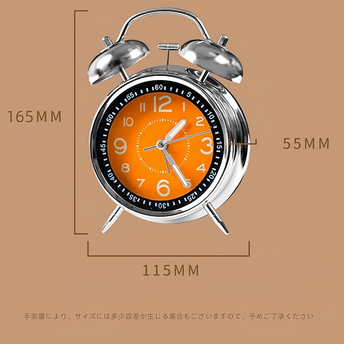 YYDS 爆音 大音量 アナログ うるさい おしゃれ 絶対起きれる目覚まし時計 振動 アラーム 爆音めざまし時計 目さまし時計 起きれるめざまし 目覚ましどけい 大音量 絶対起きる 可愛い 子供 ベル音 絶対に起きる目覚まし 静音 アラームクロック 連続秒針 金属光沢 機械式 デスクに置く 電池別売 深い眠りの方向け 夜でも見える 寝室用及び装饰品 4インチ (オレンジ+シルバー)