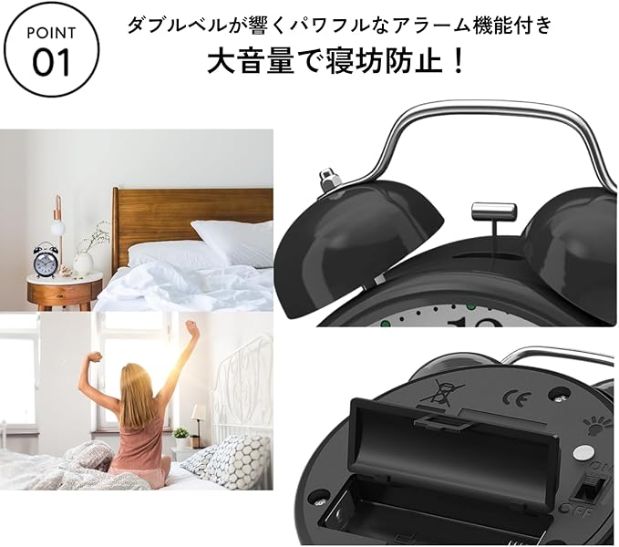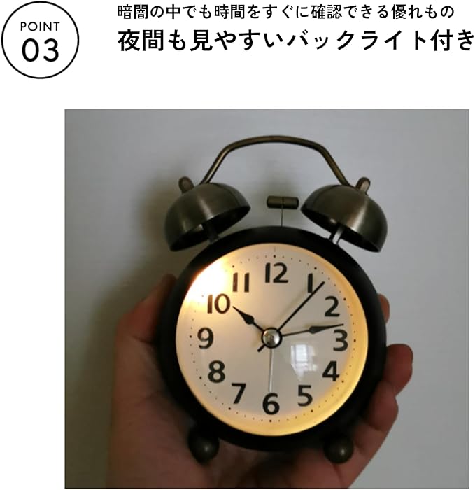 【レトロと実用性の融合】クラシックなベル式目覚まし時計が、レトロな雰囲気と現代の使いやすさを兼ね備えて登場。アンティーク調の金属フレームに大音量のダブルベル、さらに静音ムーブメント採用で、見た目も機能も一級品。インテリアとしても映える、目覚めの時間が楽しみになる逸品です。