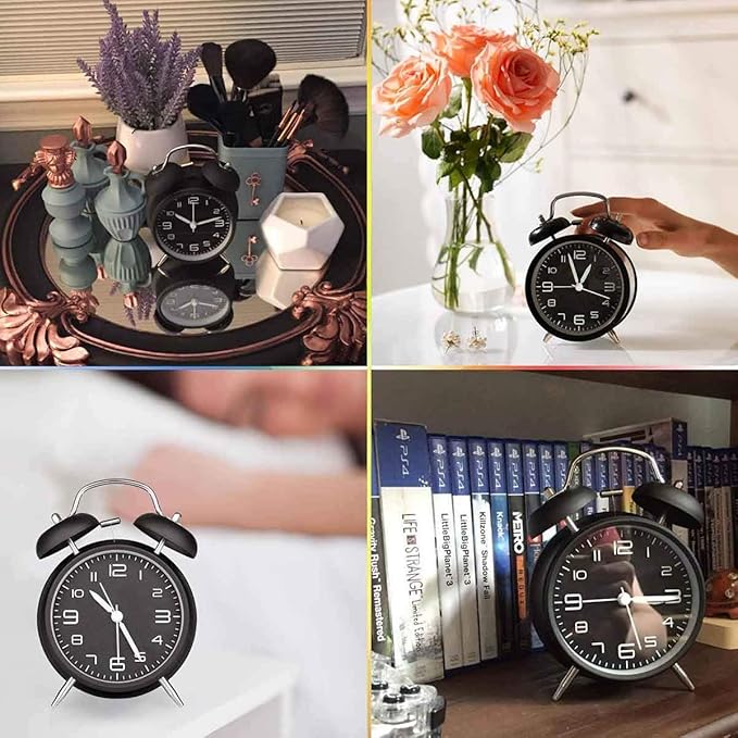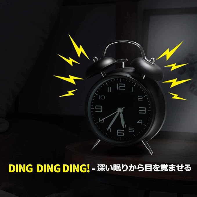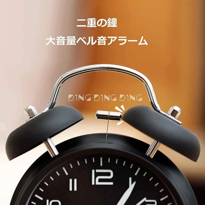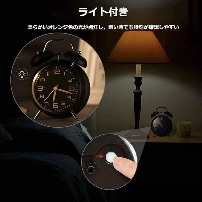 目覚まし時計 大音量 置き時計 電池式 ライト付き アラームクロック かわいい 子供部屋 引越し祝い 新築祝い プレゼント (ブラック)