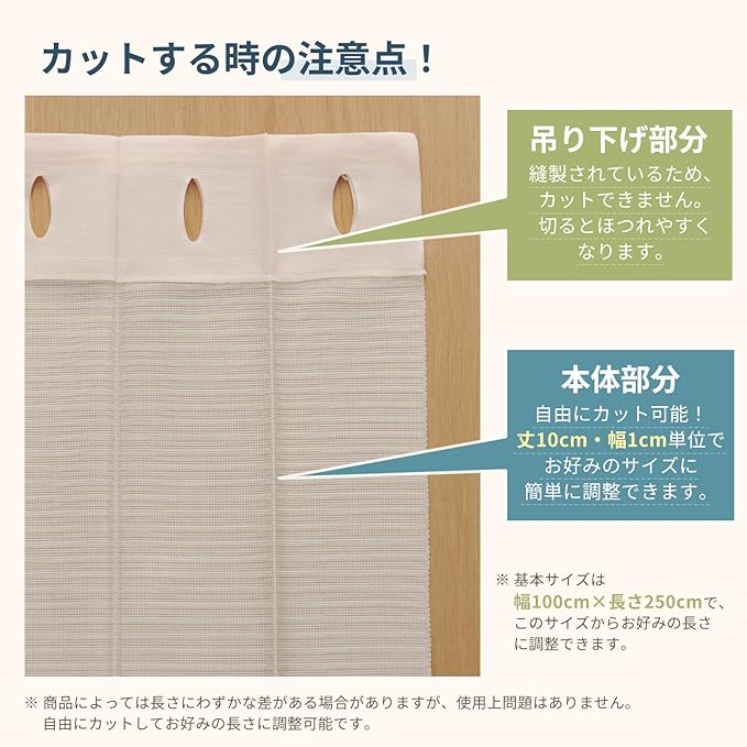 【1cm単位フリーカット】丈は1cm単位、幅は10cm単位でハサミで簡単にカット可能。お部屋の高さや幅に合わせて長さ調整ができ、好きな形にアレンジして使えるので、リビングや寝室、キッチンなど様々なシーンで活躍。収納棚やクローゼットの目隠しとしても便利で、空間をすっきり見せます。