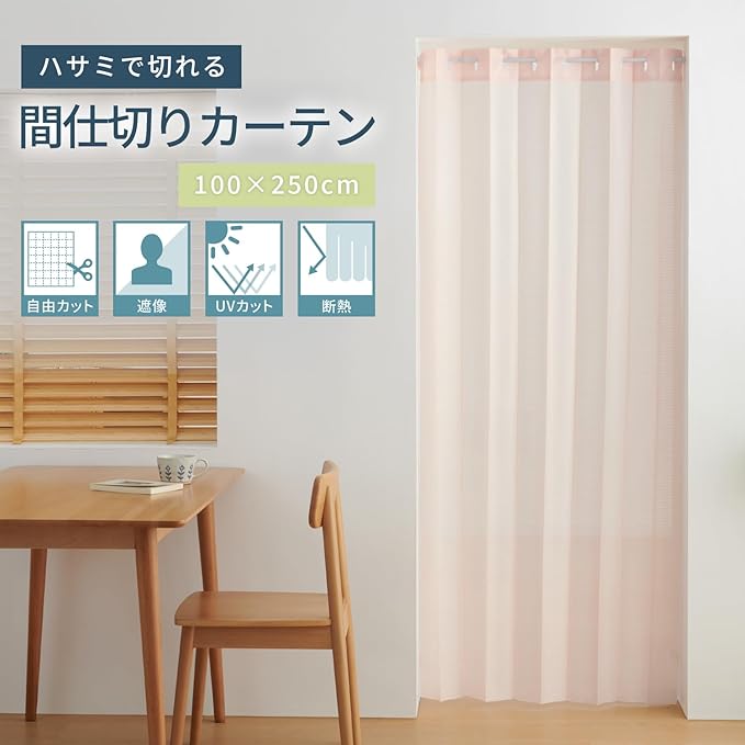 クモリ(Kumori) 間仕切りカーテン 【1cm単位フリーカット】 帝人エコリエ使用 好きな形にアレンジ 目隠し アコーディオンカーテン のれん 暖簾 突っ張り棒 シンプル おしゃれ 無地 ストライプ調 長さ調整可能 UVカット 遮像 プライバシー保護 程よい透け感 断熱 遮熱 省エネ 洗える (幅100cm 丈250cm・ピンク)