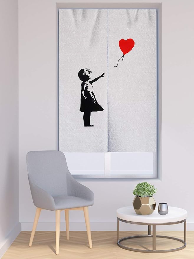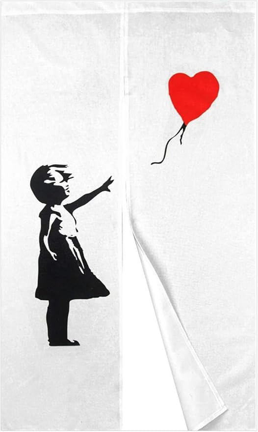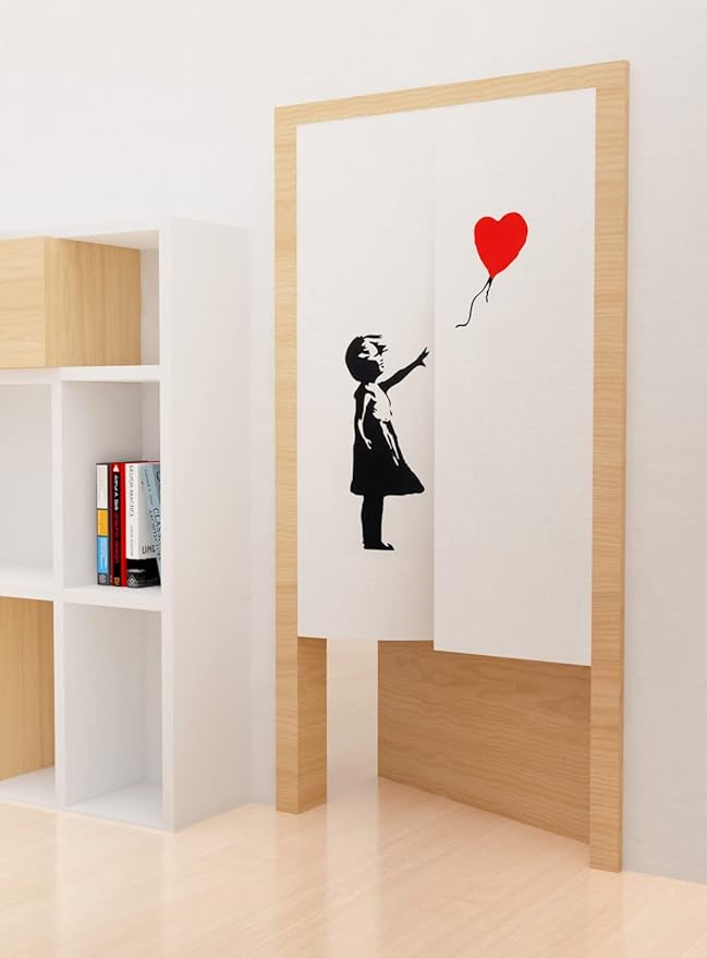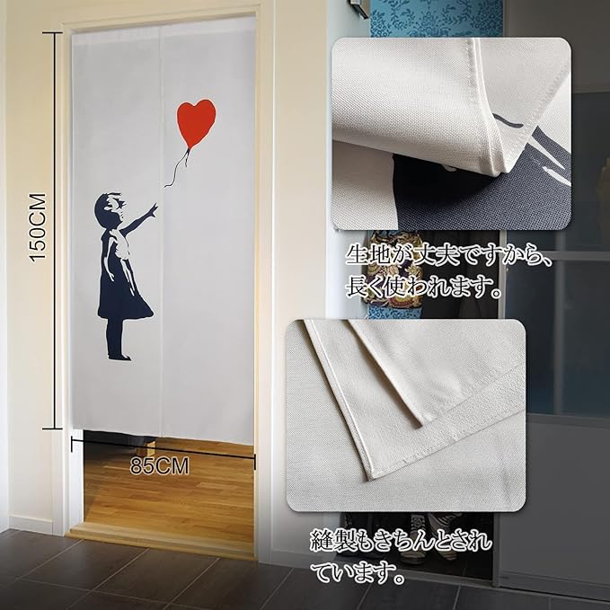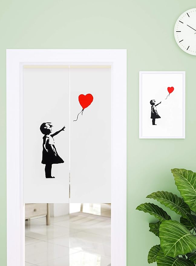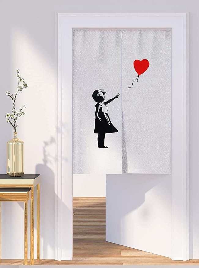 DiSAYoYoのれん バンクシー おしゃれ 間仕切り 遮光 北欧 ロング カーテン 暖簾 簡単 目隠し 見えにくい おもしろい 柔らかい 飾り 玄関 ドアカーテン キッチン リビング 飲食店 出入り口 85cmx180cm
