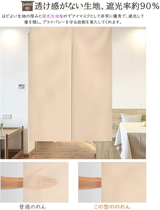 【サイズ】幅85 丈170cm 【厚手の遮光生地・四季通用】ポリエステル100% 特有の三重織りのテクノロジーにより、遮光カーテン生地を使用することで普通ののれんより外光をしっかりとシャットアウトしてくれます。生地がしっかり質感あり、手触りがいいし、丈夫で長持ちします。色が褪せにくく、耐久性に優れる。