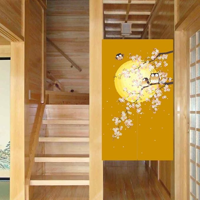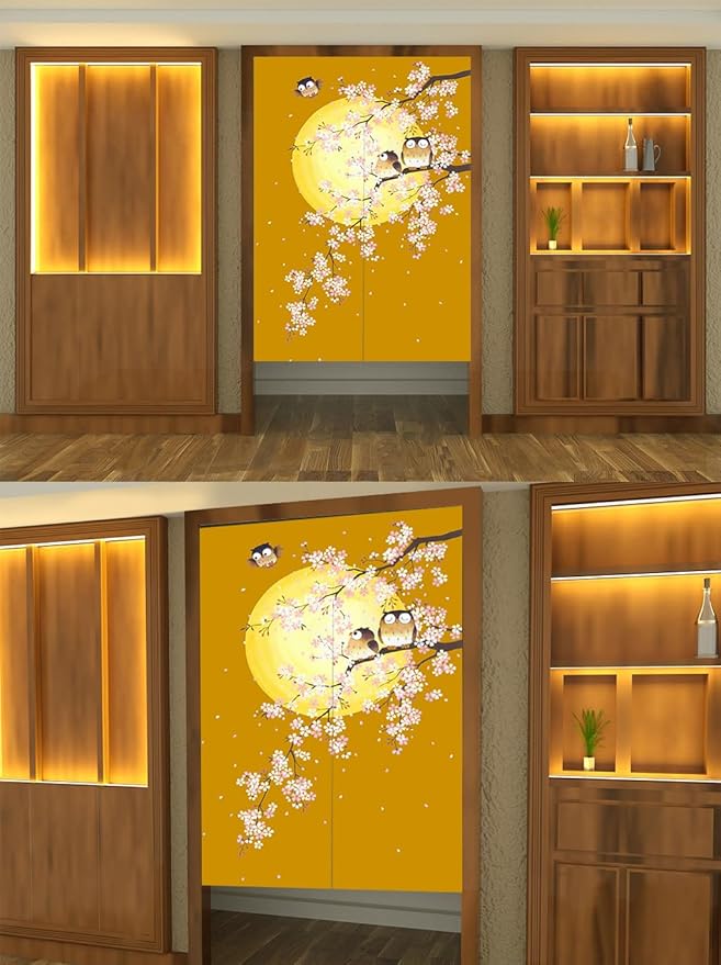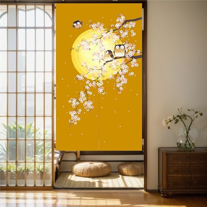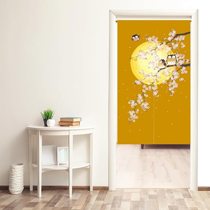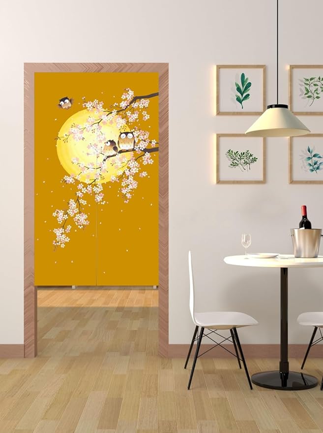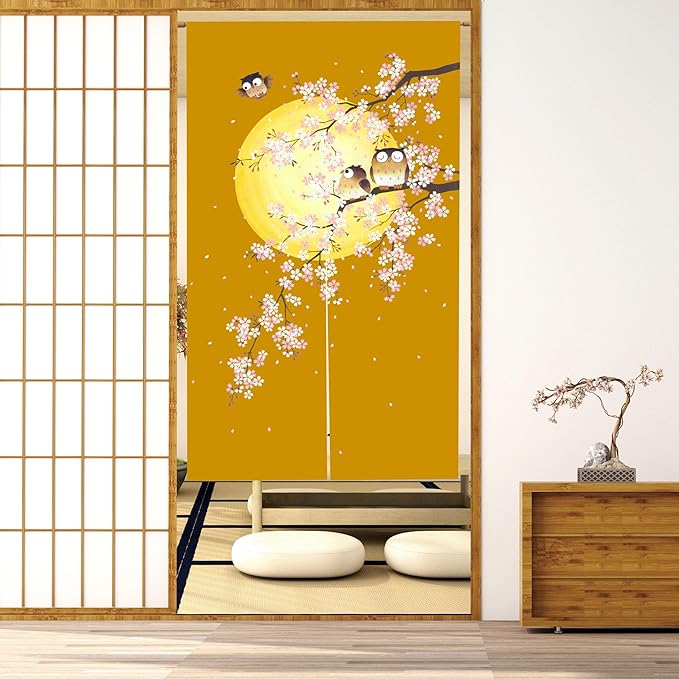 のれん 暖簾 間仕切りカーテン目隠し見えにくい おしゃれ 玄関 温泉 旅館 ホテル 廊下 お風呂 洗面所 トイレ ドアカーテン キッチン リビング 飲食店 出入り口 ブラウンふくろう幅85丈170cm
