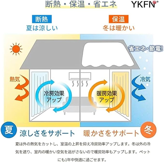 【断熱・保温・遮像 】:冷房効率UP!暖房効率UP!暑い日や寒い日に、冷房・暖房を入れていてもリビング階段や別の部屋などから熱い空気、冷たい空気が入ってしまい、なかなか快適な温度になりません。断熱機能が空調効率をアップさせ、オールシーズン省エネ効果で電気代の節約できます。