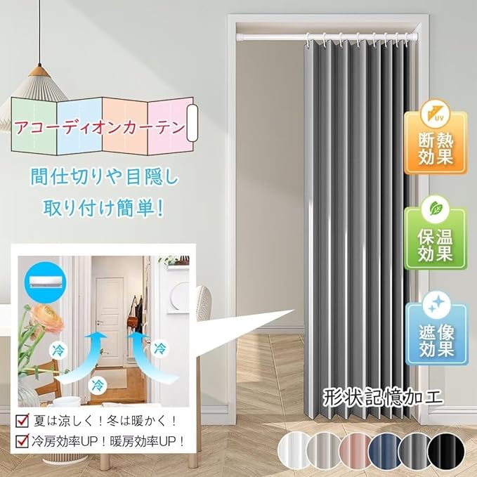 唐土工房 間仕切りカーテン 遮光 断熱 遮光カーテン 丈170cm 幅100cm のれん おしゃれ 暖簾 ロング アコーディオンカーテン 間仕切り 防音 保温 防寒 節電 省エネ ハトメ 突っ張り棒カーテン 仕切り 目隠し 形状記憶 防水 無地 厚手 ドアカーテン 1枚入り グレー
