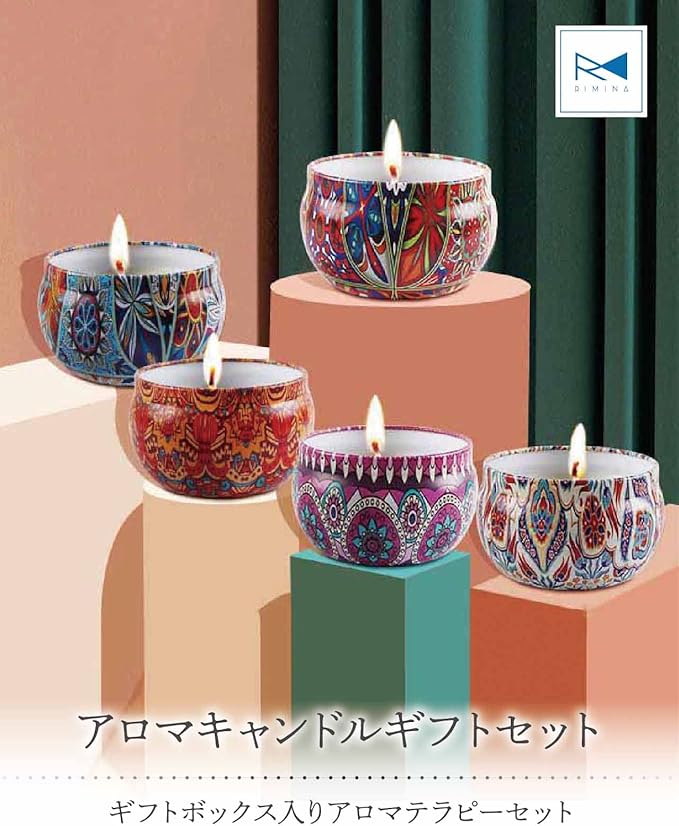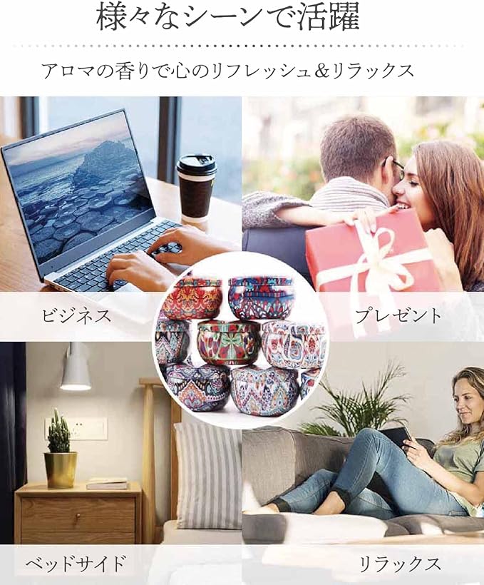 ✅【プレゼントにも最適】 アロマキャンドルはストレスを解消してリラックスすることができ、ギフトやプレゼントとしても喜ばれるアイテムです。多くの場所での使用に適しており、リラックスタイムの使用はもちろん、入浴、ヨガ、オフィスなど、様々なシーンで快適な雰囲気を作り出す事が出来ます。また美しいデザインのブリキの容器は使用後にも小物ケースや小さな植木鉢などに最利用する事が可能です。