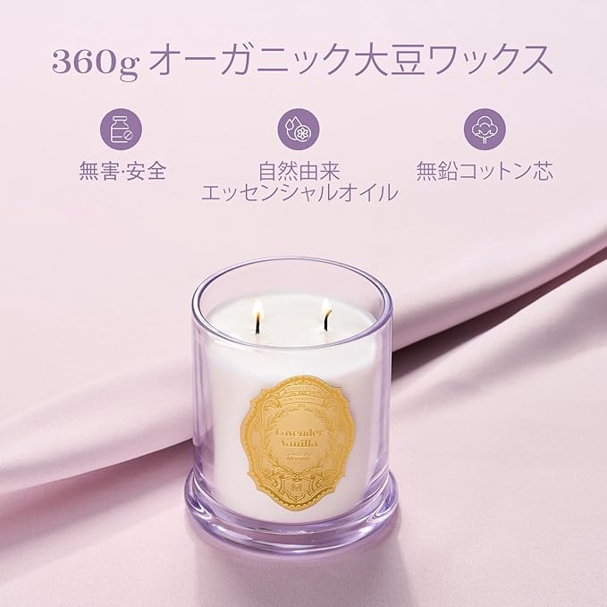 M&SENSE アロマキャンドル キャンドル 2本芯 バニラ・ラベンダーの香り 蓋付き 65時間 長時間 360g ソイキャンドル おしゃれ 香薰蜡烛 癒しグッズ ホワイトデー バレンタイン 母の日 ギフト 女性向け プレゼント