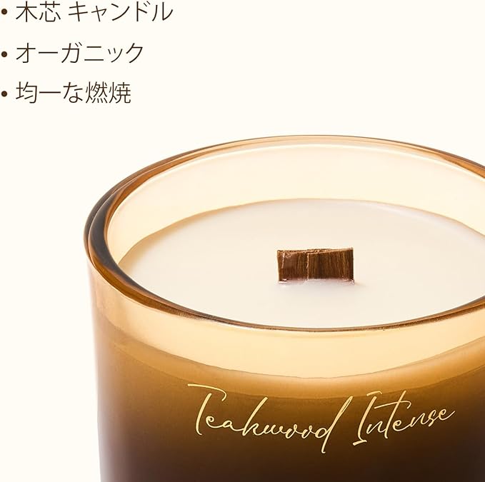 「均一安定に燃焼」:木製ウィックの心地よいパッチン感と長時間香り270gの木芯キャンドルには、高級フレグランスオイルを配合したソイワックスが封じ込められており、豊かで深みのある香り体験をお届けします。天然木製ウィックは、最大 55 時間にわたり「パチパチ」と心地よい音を立てながら安定して燃焼。木のぬくもり溢れる火炎が香りを広範囲に拡散し、部屋全体をゆったりとした香りの空間に変えます。