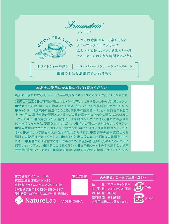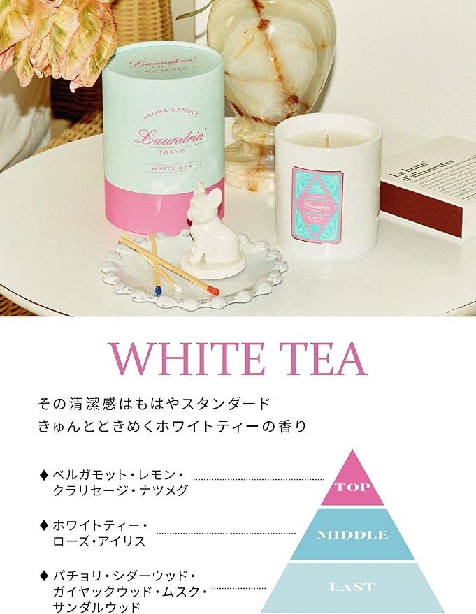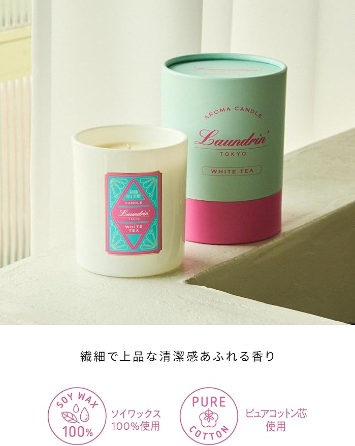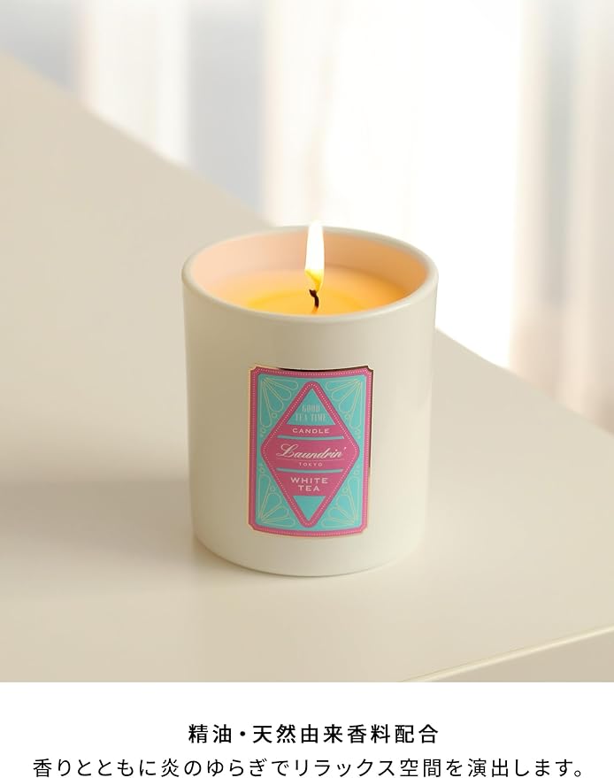 Laundrin'(ランドリン) アロマキャンドル ホワイトティーの香り 180g ギフト プレゼント 約36時間 植物性100%・パラフィンフリー