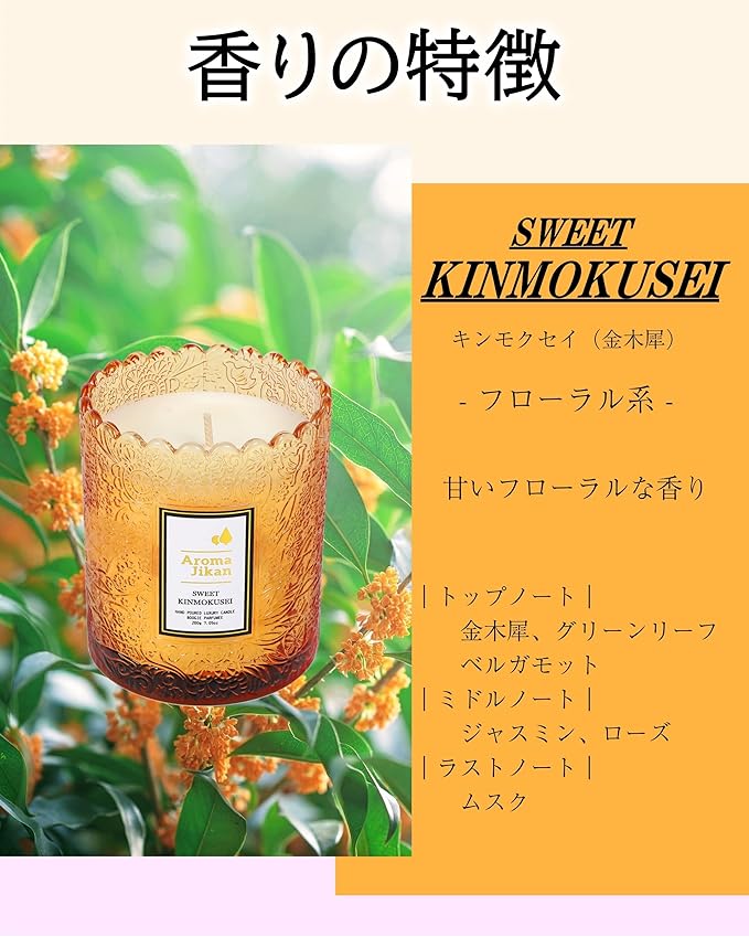 【雑誌掲載】 Aroma Jikan アロマキャンドル スウィートキンモクセイ 金木犀の香り フローラル系 200g 35時間 SweetKinmokusei 甘い花の香り 天然素材 ソイワックス ホワイトデー バレンタイン 母の日