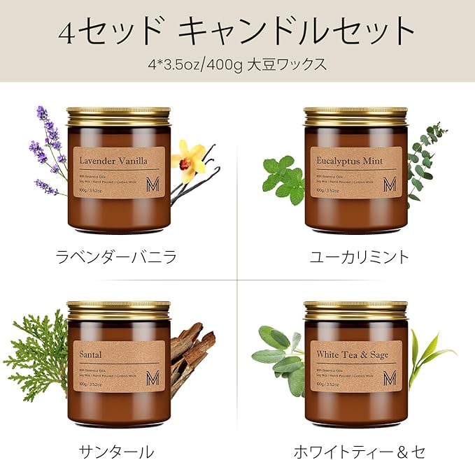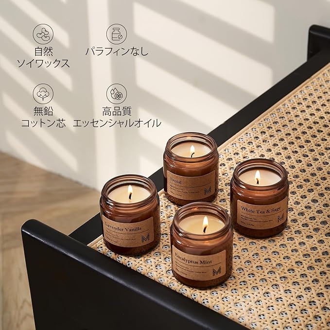 M&SENSE アロマキャンドル 4セット ミニ 蓋付き 花の香り バニラ ホワイトティー ラベンダー キャンドル 香薰蜡烛 アロマ ギフトセット 女性 人気 癒しグッズ ホワイトデー バレンタイン 母の日 ギフト 女性向け プレゼント