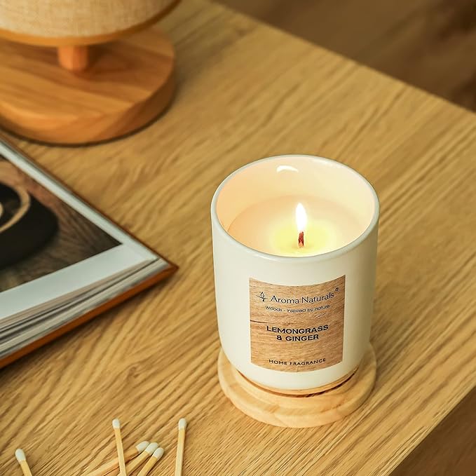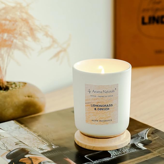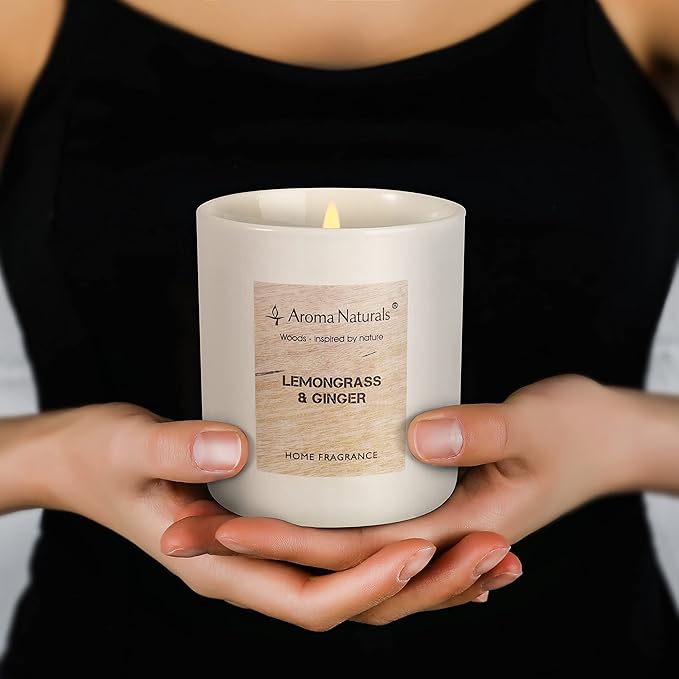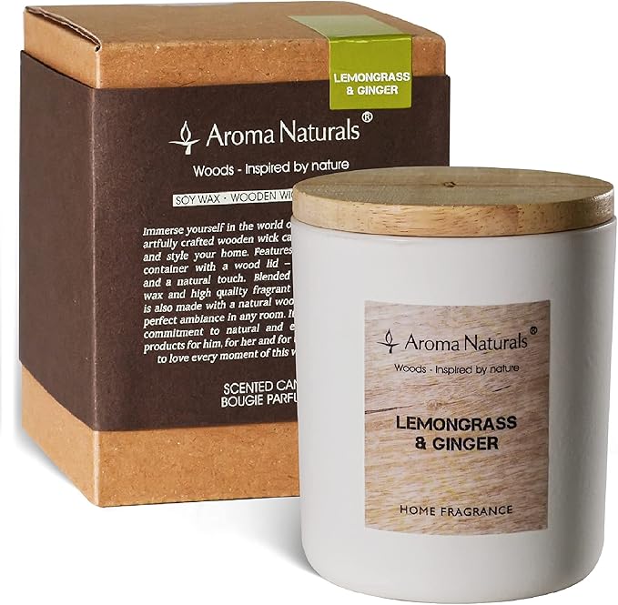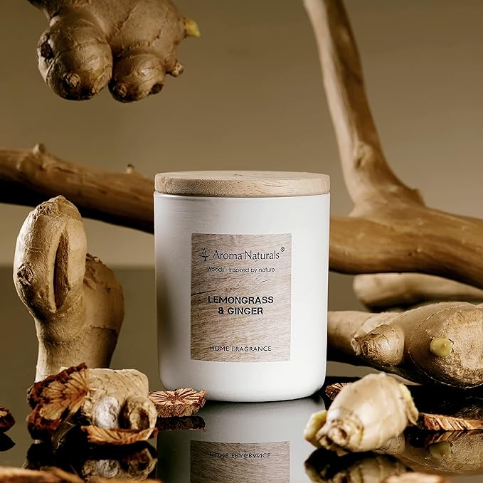 Aroma Naturalsアロマキャンドル レモングラス&ジンジャーの香り大豆ワックスキャンドル 35時間ジャーキャンドル プレゼント (Lemongrass & Ginger)
