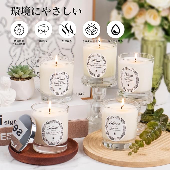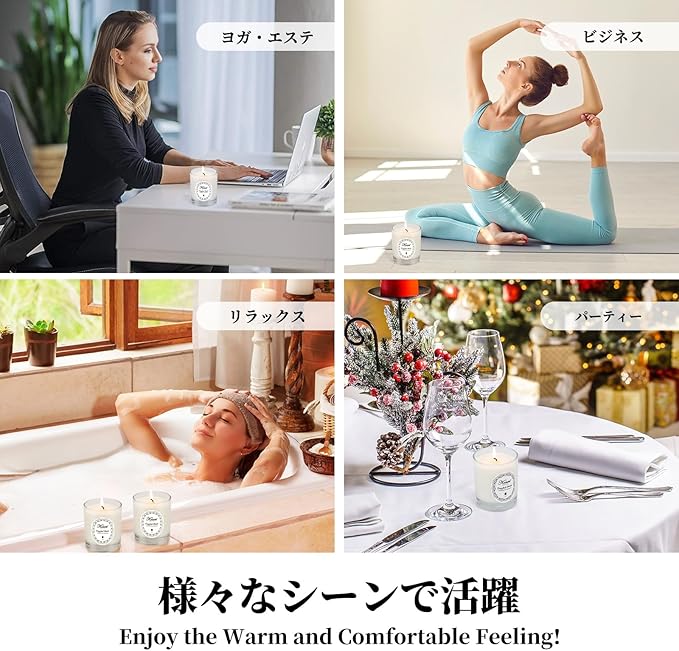 プレゼントにも最適:アロマキャンドルはストレスを解消してリラックスすることができ、ギフトやプレゼントとしても喜ばれるアイテムです。多くの場所での使用に適しており、リラックスタイムの使用はもちろん、入浴、ヨガ、オフィスなど、様々なシーンで快適な雰囲気を作り出す事が出来ます。また美しいデザインのブリキの容器は使用後にも小物ケースや小さな植木鉢などに最利用する事が可能です。
