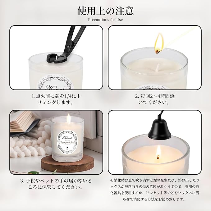 自然に優しいキャンドル:植物由来のソイワックス!ススが出にくく部屋が汚れないので、食事中や、おやすみ前でも安心してお使いいただけます!また石油由来のパラフィンワックスと比べ、香りの広がりもよく、燃焼時間も長く楽しめます。