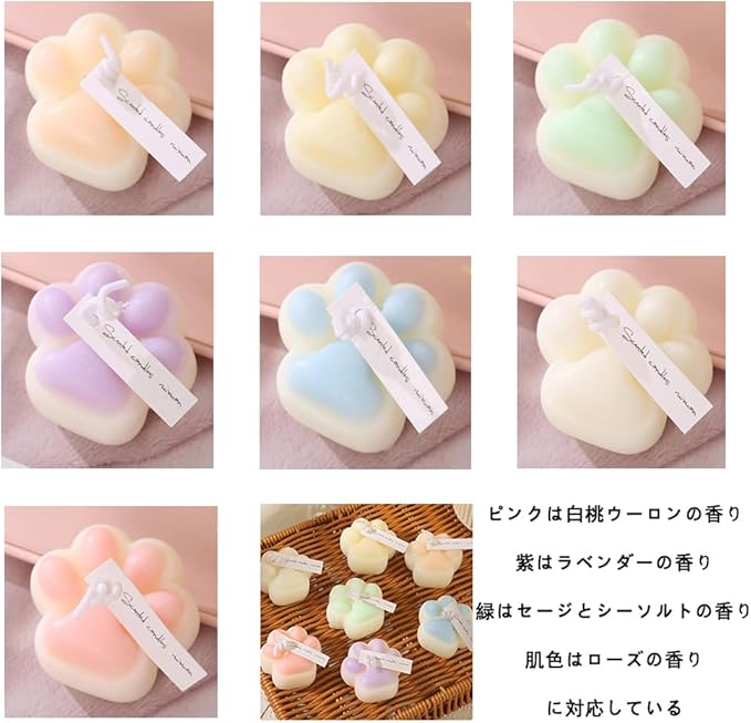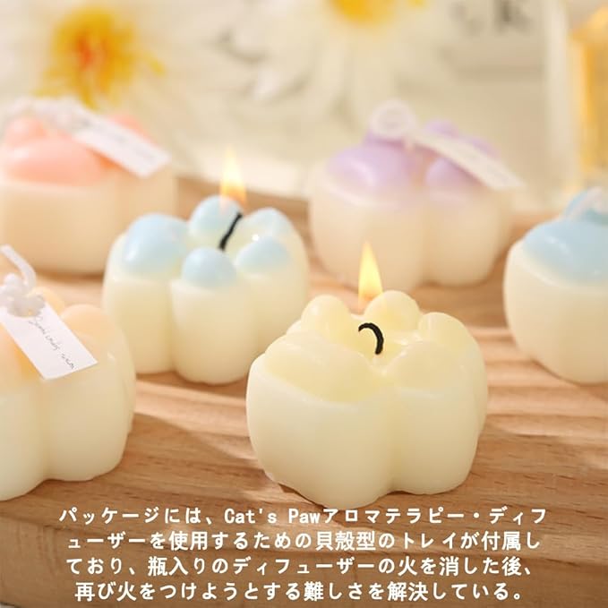 アロマキャンドル 天然ソイワックス 猫の足型 5個セット 燃焼時間24時間 プレゼント 天然素材 バレンタイン 母の日(4つの香り)