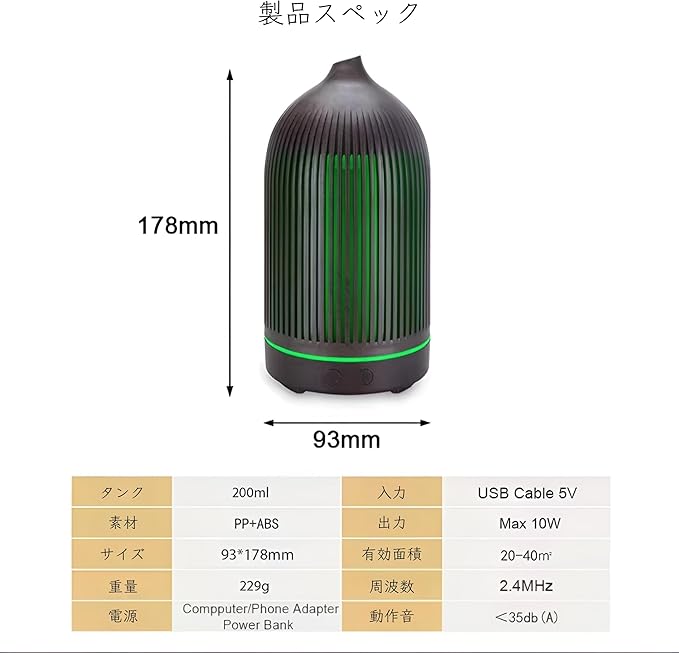【Jaula】ハウラ 鳥かごアロマディフューザー LED7色変更 静音仕様 200ml 超音波 USBケーブル 説明書 エッセンシャルオイル別売