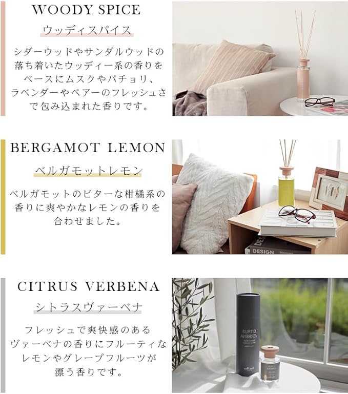 フレグランス ディフューザー ウッドリッド (L) スティック リードディフューザー アロマ ディフューザー ルームフレグランス 【ベルガモットレモン/430ml】