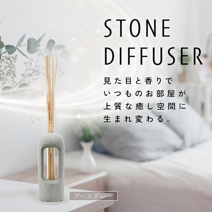 ストーンディフューザー 100ml インテリアになるリードディフューザー (アースグレー, タワー, 檜の香り)