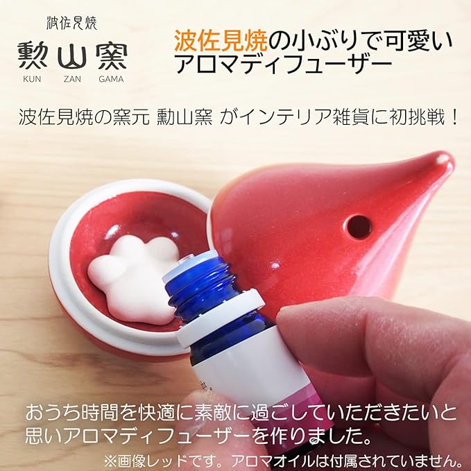 ジェイキッチンズ 勲山窯 アロマディフューザー 波佐見焼 日本製 5.5x8cm 肉球型 アロマストーン (アロマ プレート)5個付 野花 レッド コンパクト